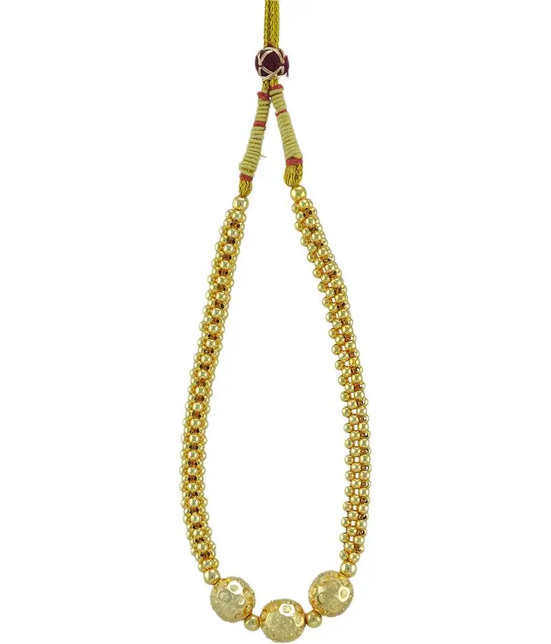 This Classic Kolhapuri Thushi Necklace represents traditional Maharashtrian grace with its minimalistic chain-link design and 1 gram gold finish. Its timeless style makes it ideal for both festive wear and everyday ethnic dressing.